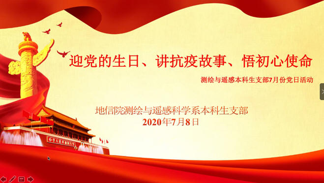 测绘与遥感本科生支部顺利召开“迎党的生日、讲抗议故事、悟初心使命”7月份党日活动。活动分三部分展开,第一部分是邀请参与过战疫的同志分享自己的故事经历;第二部分是支部其他同志发表感想;第三部分是支部书记何可沁同志总结此次活动。