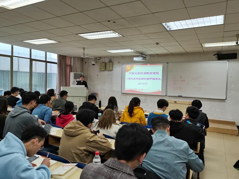 分党校第12期发展对象培训班开班典礼在校本部科教南楼307举行。开班典礼由培训班班导师杨通田老师主持,院党委副书记李建军老师出席会议,培训班全体67名学员参加了本次开班典礼。