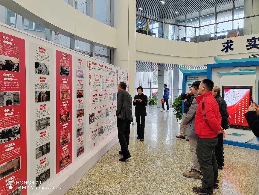 第二篇为回顾篇——认真回顾走过的路。在该篇章中,讲解员带领同志们回顾了建党以来中国共产党历次全国代表大会的概况、明升M88 粉末冶金院的发展历程以及黄培云和黄伯云两位院士为国家做出的巨大贡献。