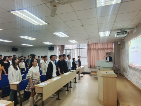 开班典礼伊始,全体人员起立,奏唱国歌,在激昂的国歌声中,开班典礼拉开序幕。随后由李建军副书记作动员报告,李书记首先对参加发展对象培训班的同学们表示欢迎,希望同学们能在培训过程中认真学习,不忘初心,牢记使命,加强党性修养,以实际行动向党组织靠拢。随后杨通田老师对本期培训班的基本情况进行简要介绍,他就课程安排、考核要求、请假程序、补课方法等基本内容进行了说明,对“青春向党‘七个一’”手册做了重点补充说明。开班典礼在《国际歌》的歌声中顺利结束。