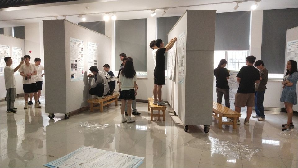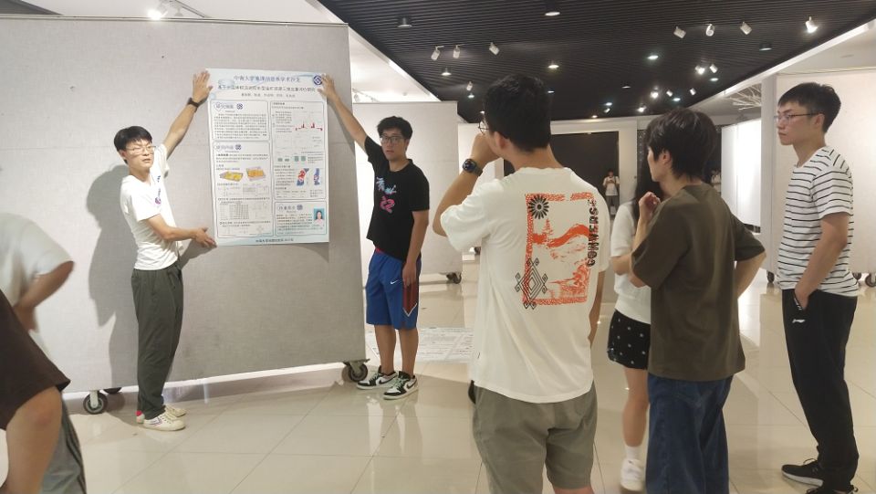 630日上午活动准备阶段,党员同志们齐心协力,为此次学术沙龙布置场地,精心打印粘贴学术海报,协调来自地理信息系博士、硕士研究生、本科生的55项优秀学术研究成果,将涉及深度学习与遥感、地球化学异常、类脑智能与遥感、杨赤忠滤波与推估、城市空间结构挖掘、人类移动模式挖掘、三维建模、国土空间与自然资源、知识图谱与地质灾害等多个交叉融合研究方向的不同研究内容海报进行合理的排版布局,以期实现多元交叉展示的效果,使得参与者能够更轻松地参与到各个环节中去。