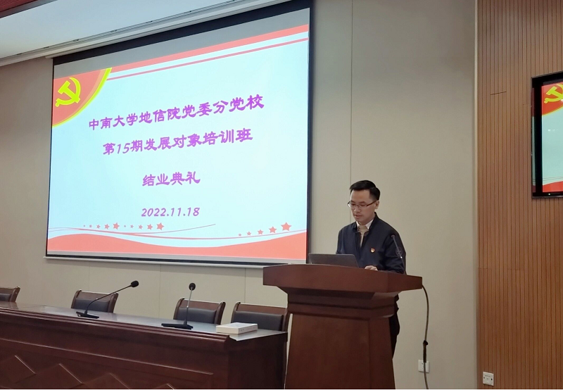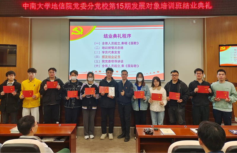 党委分党校第15期党员发展对象培训班结业典礼在地科楼127顺利举行。本次结业典礼由培训班班导师杨通田老师主持,培训班全体学员参加。