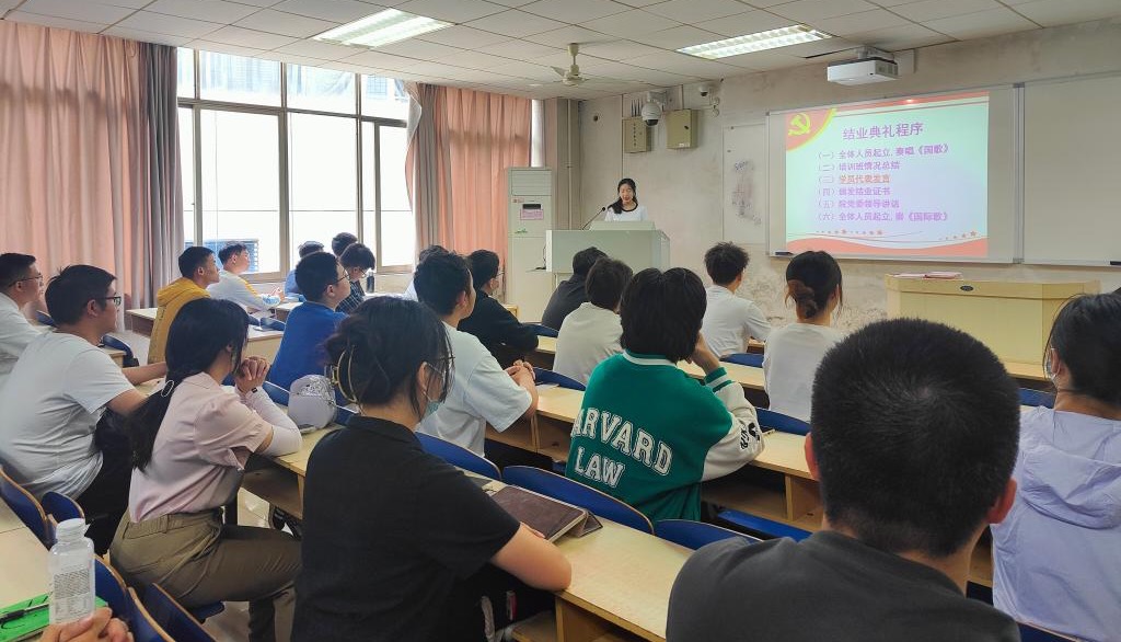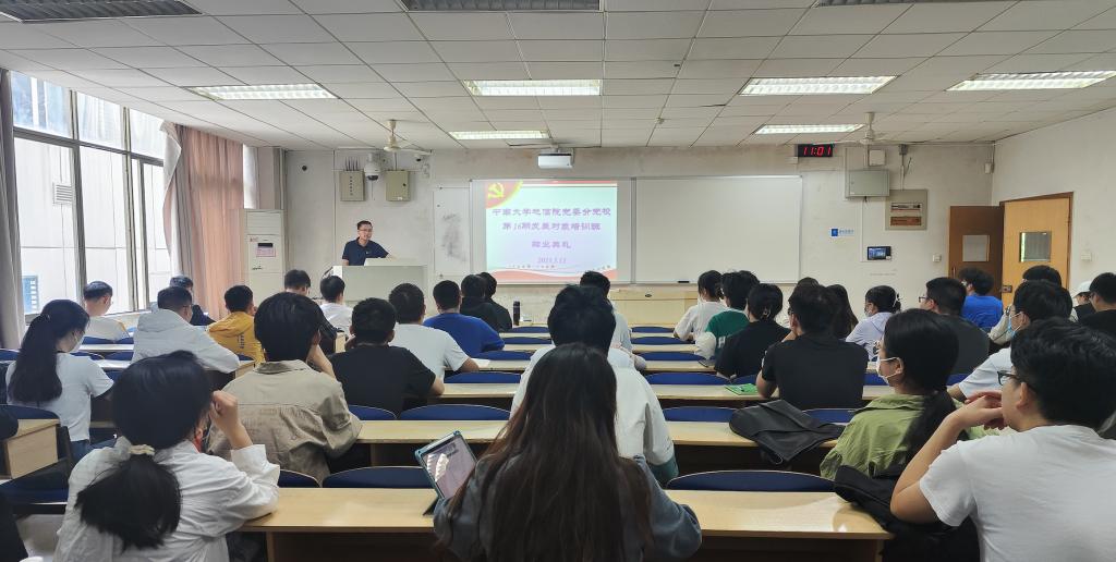 分党校积极分子培训班班导师杨晨雨、发展对象培训班班导师杨通田、培训班全体57名学员参加,结业典礼由杨通田老师主持。