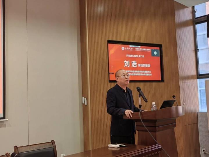 典礼伊始,全体人员起立,奏唱国歌,在激昂的国歌声中,开班典礼拉开序幕。随后,刘浩副书记作动员报告。刘书记首先代表院党委对全体学员表示祝贺和欢迎,并引用习近平总书记的讲话寄语同学们,“广大青年要肩负历史使命,坚定前进信心,立大志、明大德、成大才、担大任,努力成为堪当民族复兴重任的时代新人”。同时他向培训班同学提出了几点要求,一是在学习期间要严格遵守培训纪律,重视学习机会;二是要加强政治理论学习,深入学习思想理论,提高政治素养;三是要加强党性修养,以实际行动积极向党组织靠拢。