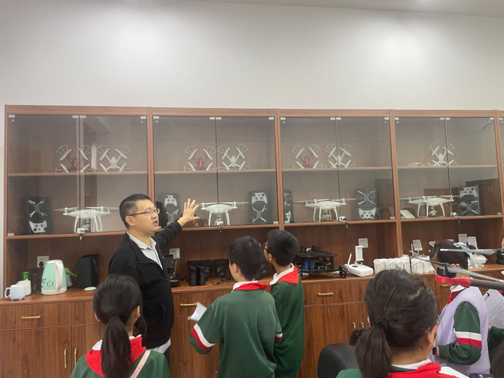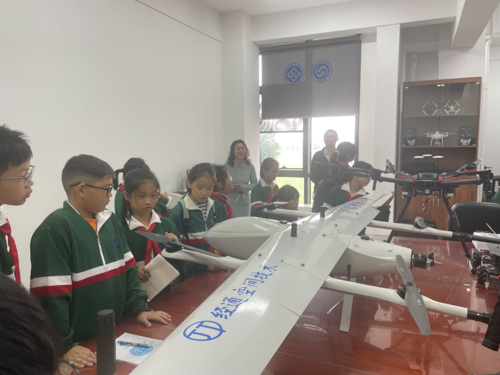 第三站,同学们来到了遥感遥测实验室,一件件无人机勘测设备吸引了同学们好奇的目光,让他们惊奇、给他们快乐。