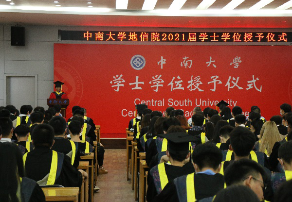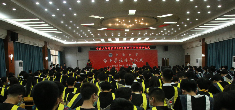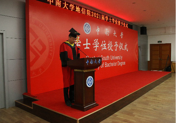 党委书记邵拥军,院长戴前伟,党委副书记李建军,副院长邹滨,地质工程系孙平贺老师,测绘与遥感科学胡俊、冯徽徽、杨泽发老师,应用地球物理系冯德山、任政勇、肖建平、李帝铨、郭振威、张彬老师,地理信息系邓敏、张宝一、刘慧敏、陈杰老师,以及学工办全体辅导员与21届全体毕业生参加此次毕业典礼暨学位授予仪式。仪式由李建军副书记主持。