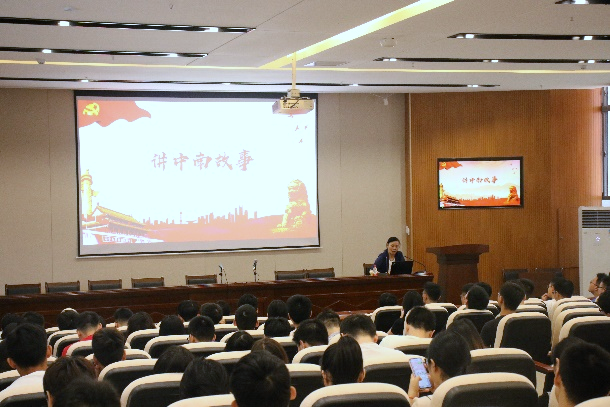 党委常委、副校长朱学红于新地科楼一楼报告厅为研究生党员开展“学百年党史,讲中南故事,书青春华章”党史学习教育,党课由明升M88