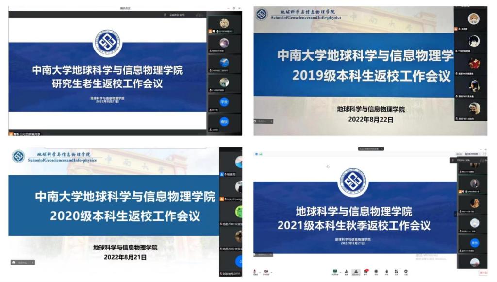 各年级相继于2022年8月21日至22日在腾讯会议召开了秋季学生学生返校工作会议,会议由各年级辅导员主讲,各年级全体学生参会。