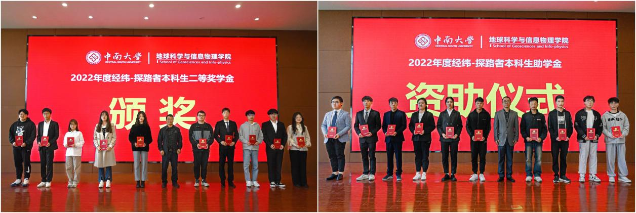 经纬-探路者奖助学金”以来,已有150余名学生获得奖励及资助。未来,希望同学们秉承“知行合一,经世致用”的校训,脚踏实地奋斗在青春赛道上,做不忘初心的中南人,做砥砺奋进的地信人。