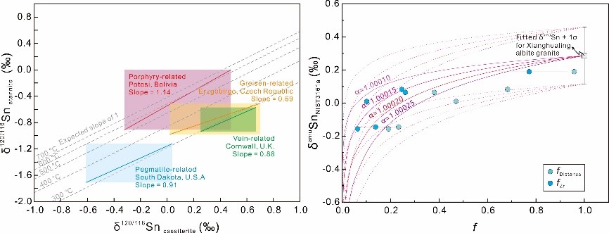 锡石(SnO2)是自然界中最具经济价值的含锡矿物,广泛产出于与高分异岩浆-热液作用相关的多类地质体中(如钠长花岗岩、云英岩、伟晶岩、矽卡岩、石英脉等)。现有文献已报道了不同地质体中产出的锡石一些微量元素的含量差别高达2–4个数量级。另外,新兴的锡稳定同位素研究也发现同一矿床的锡石锡同位素组成存在较大差异。然而,导致锡石微量元素含量和锡同位素显著变化的基本机制尚未查明。