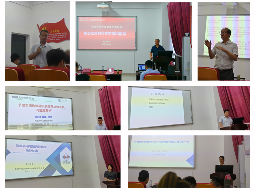 党委书记邵拥军教授、地质工程系主任孙平贺教授、肖婷讲师、朱凌讲师、长沙理工大学陈文胜教授、湖南省地质灾害调查监测所、湖南省地质灾害监测预警与应急救援工程技术研究中心王璨、姚腾飞等参加论坛活动,地质工程系副主任张鑫鑫副教授主持论坛。