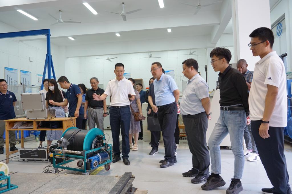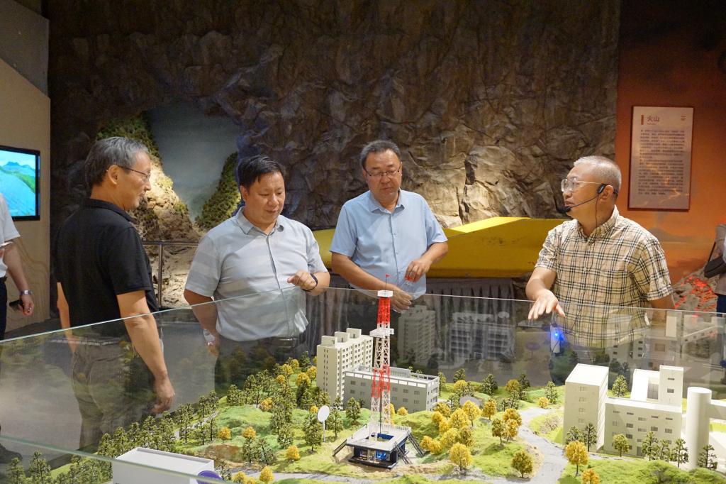 随后,调研团成员一行走进地球科学奥秘与科技创新湖南省科普基地,在大厅观看了科普基地建设及科普活动开展的视频介绍。对于高校在不增加投入的情况下,利用现有实验室条件,充分发挥科教资源优势,多元化开展科普活动的模式,调研团给予了充分肯定。调研团重点参访了深部钻探平台与地质灾害模拟演示室,亲身体验了科教资源科普化的趣味性、互动性与启发性,深刻感受到国家开展深地科学探测与重大地质灾害防治的重要意义与时代紧迫性。