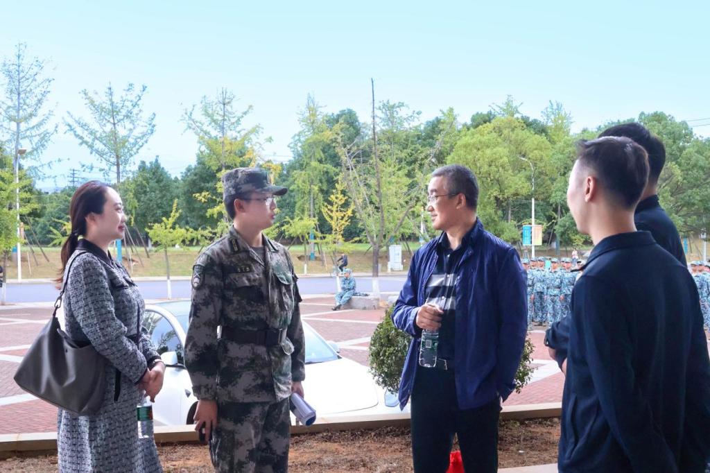 党委副书记李建军叮嘱带训教官处理好学习与训练的关系,希望2023级新生通过此次军训提高政治思想觉悟,增强集体主义精神和组织纪律观念,培养同学们吃苦耐劳、艰苦奋斗、团结合作、纪律严明的优良作风。