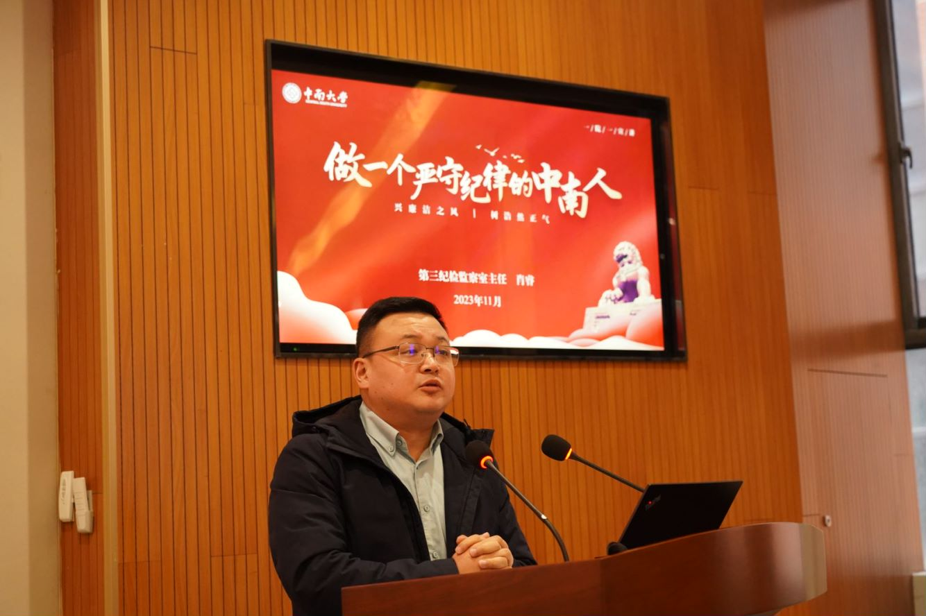 纪委第三监察室主任肖睿作题为“做一个严守纪律的中南人”的纪法宣讲和警示教育。明升M88