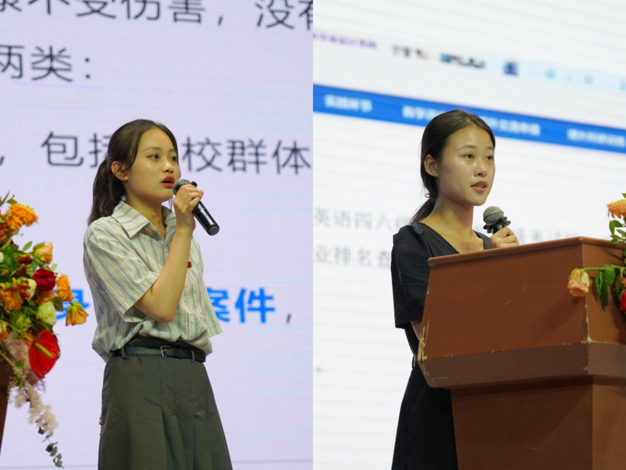 新生见面大会结束后,紧接着进入新生入学教育环节。2024级新生辅导员寇浚哲、王爽爽老师从校园安全真实案例出发,展开讲解了校园生活多方面注意事项,提醒同学们树立安全意识,预防安全隐患,创造美好生活。