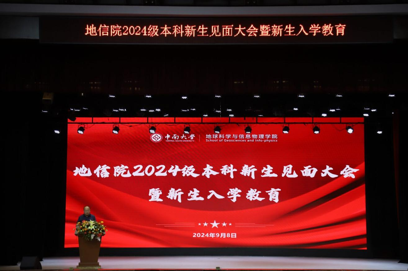 党委委员及地质工程系主任孙平贺、地质资源系教工党支部书记成永生、测绘与遥感科学系教工党支部书记汤玉奇、应用地球物理系副主任张大洲、全体辅导员以及2024级本科新生参会。大会由明升M88