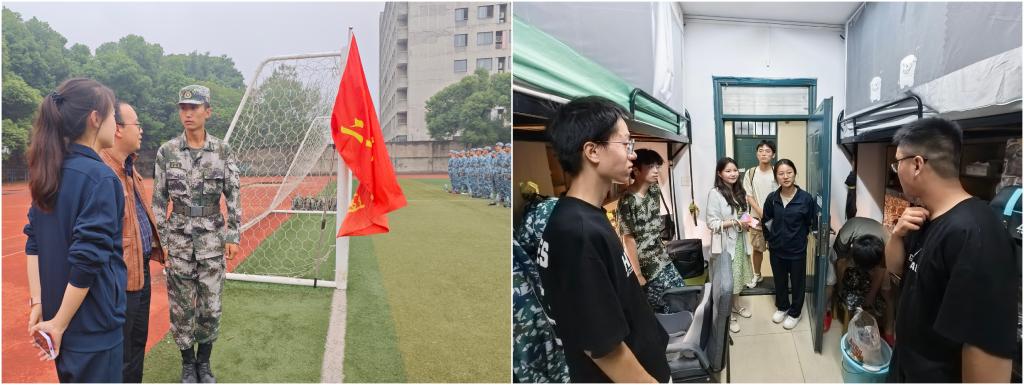 团委书记刘琦、2024级新生班导师刘清泉、尚文、刘小铭及高年级辅导员老师们也深入军训现场与学生寝室,各学生组织的学长学姐们每日轮流值班,配合做好后勤保障服务工作,让同学们切实感受到关心与温暖。