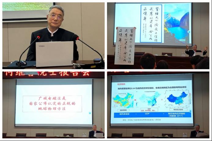 何院士接着谈到了国家“双碳”目标,并指出,地球物理技术不仅在防灾减灾上作用巨大,在开发清洁能源,特别是地热能方面,同样大有可为。何院士正运用广域电磁法,参与香港中文大学深圳校区“零碳校园”的建设,探索地热能的利用。通过具体案例,何院士生动展示了该技术对开发清洁能源的重要作用,并指出地热有望成为中国能源转型的关键力量。