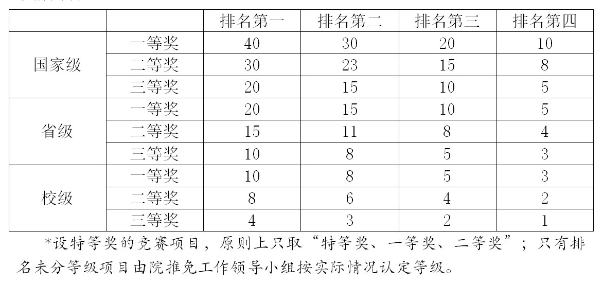 认定的各专业自行增列的竞赛项目)按级别、排名和奖励等级计分,取前四名(获奖人数超出4人时,按高等级优先、同等级学业成绩专业内相对排位靠前优先原则实施)。文体等竞技类比赛(包括明升M88