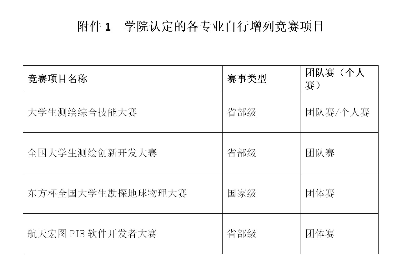 目录外竞赛项目(见附件1)加分时按上述相应标准计一半分。