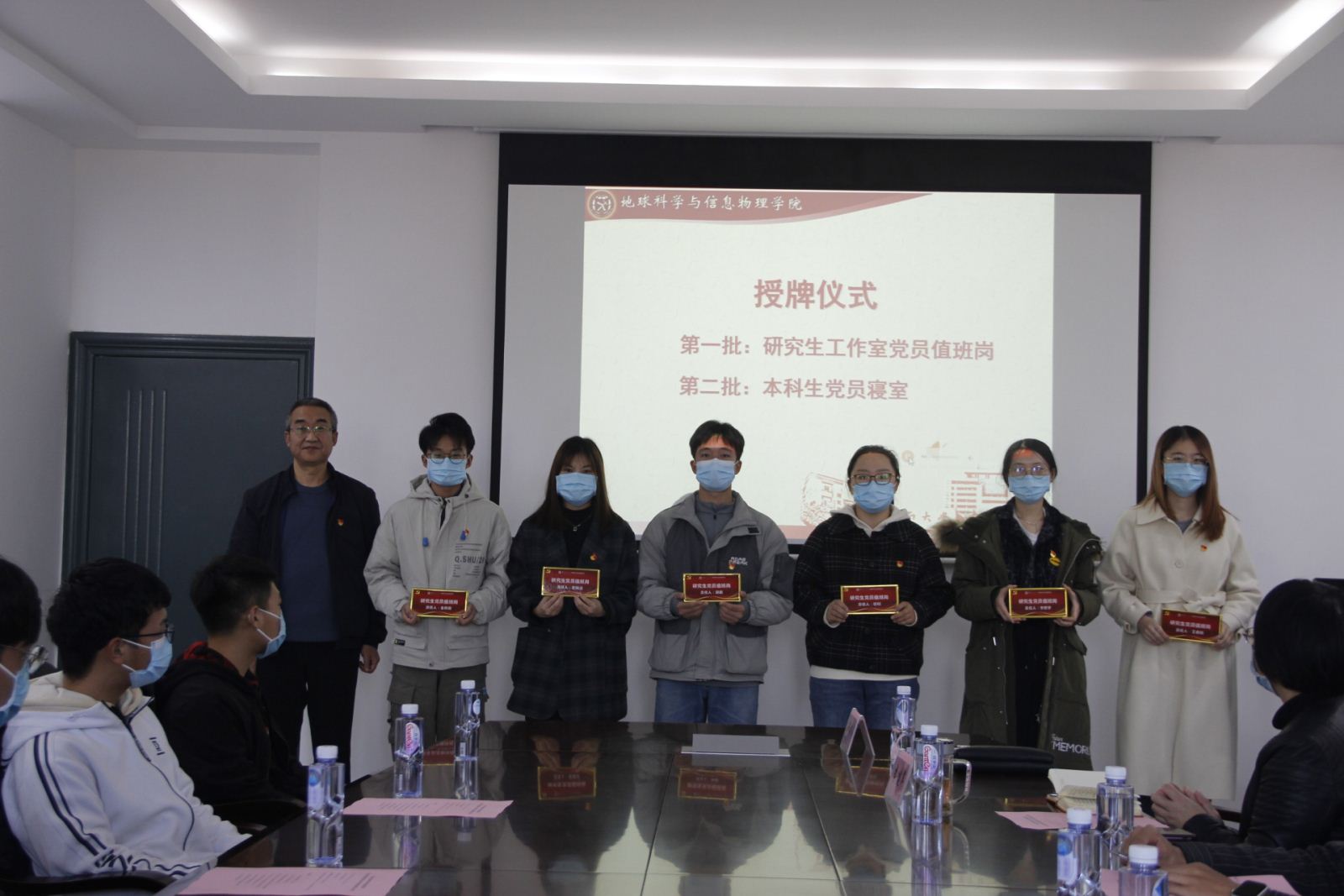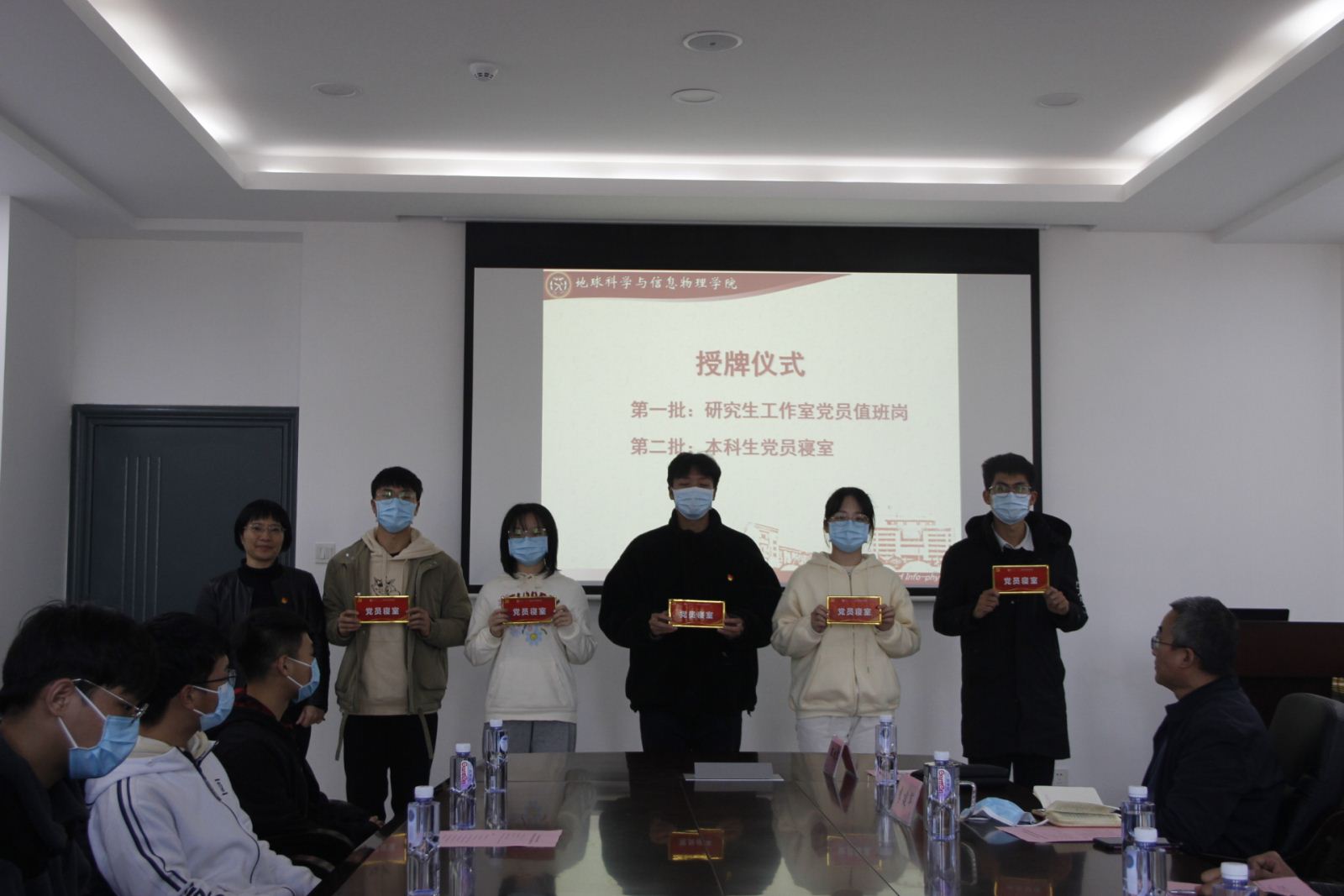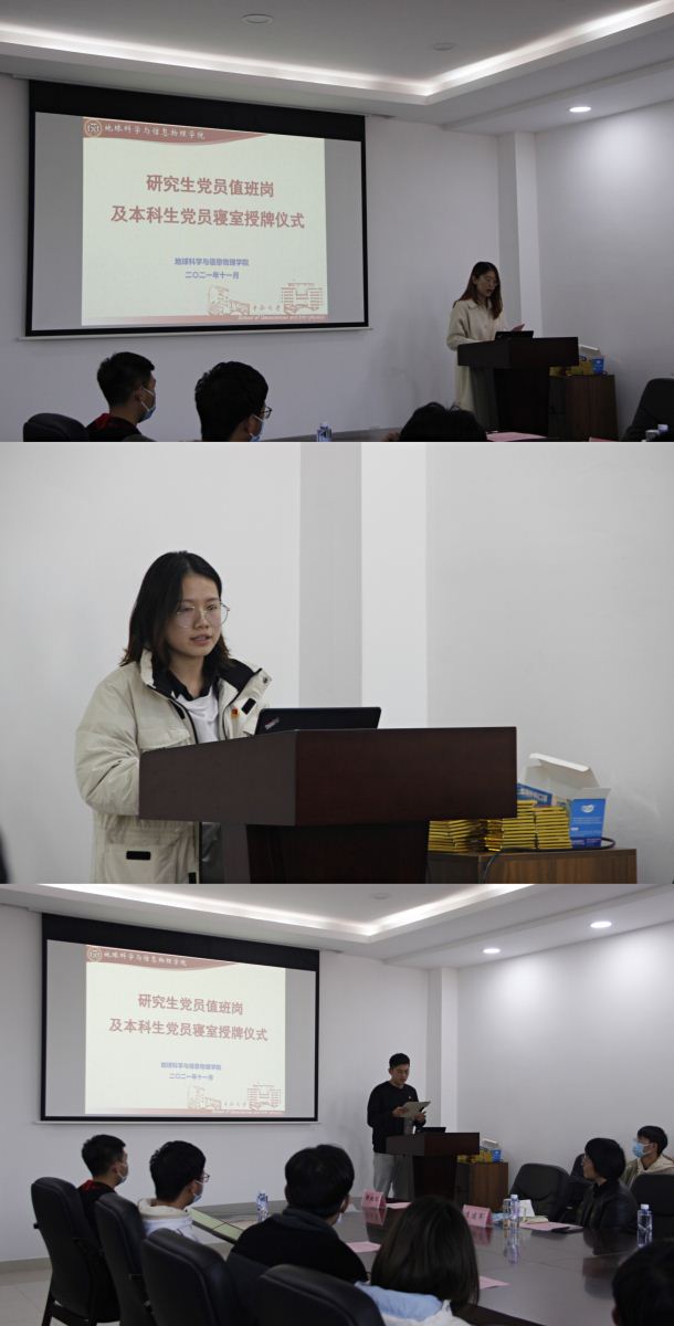 在地科楼214会议室郑重举行了研究生工作室党员值班岗及本科生党员寝室授牌仪式。出席本次授牌仪式的领导老师有,明升M88