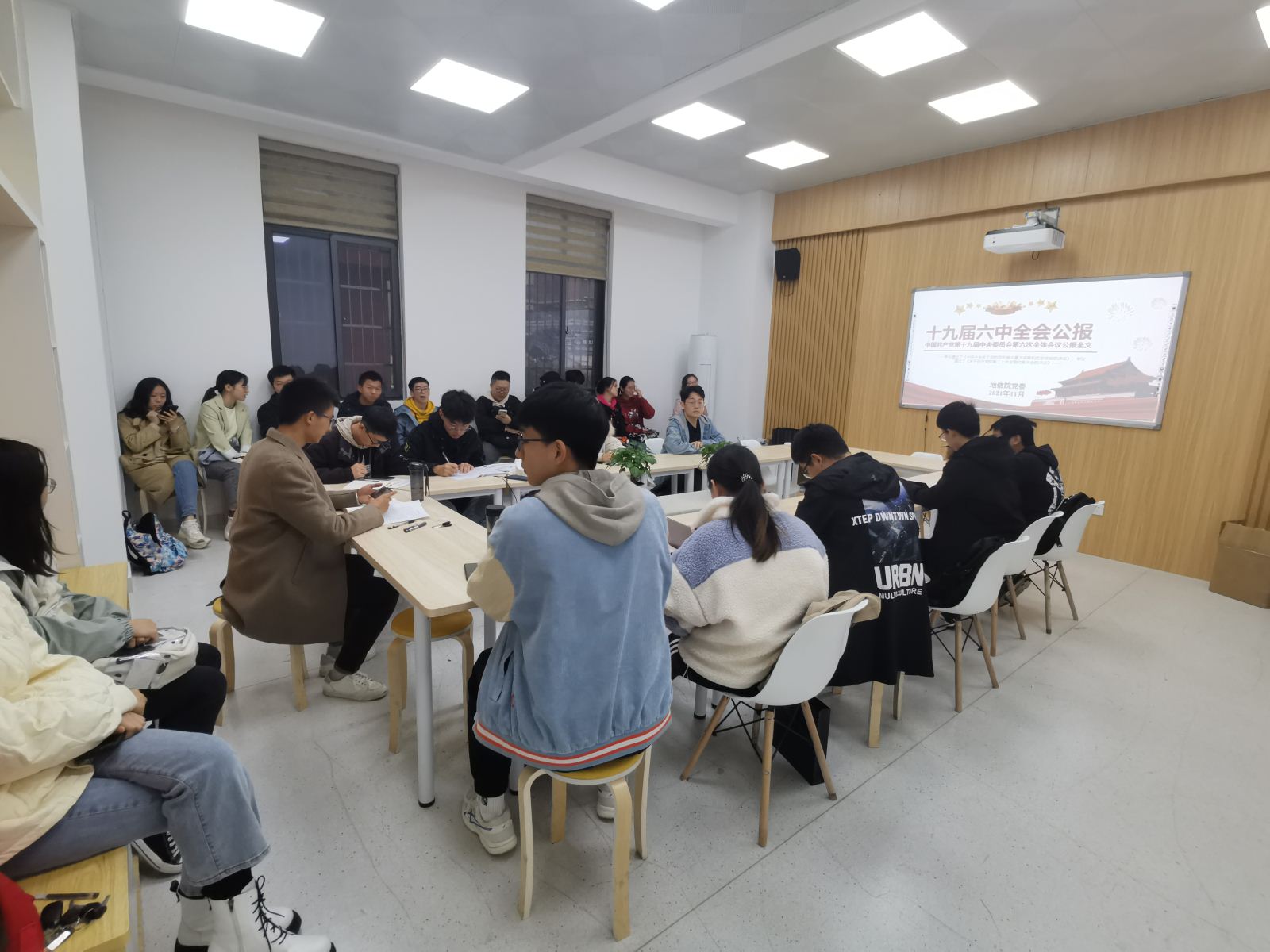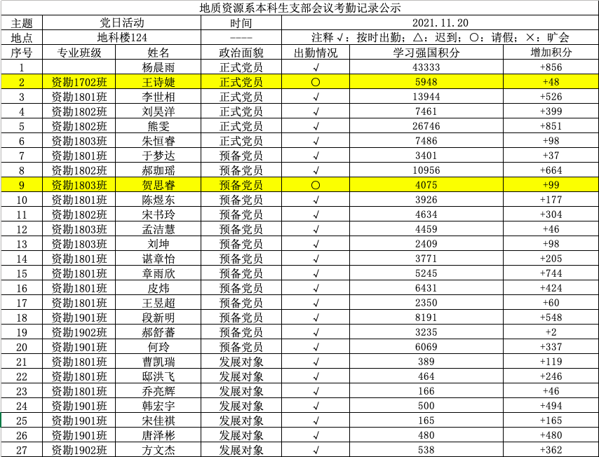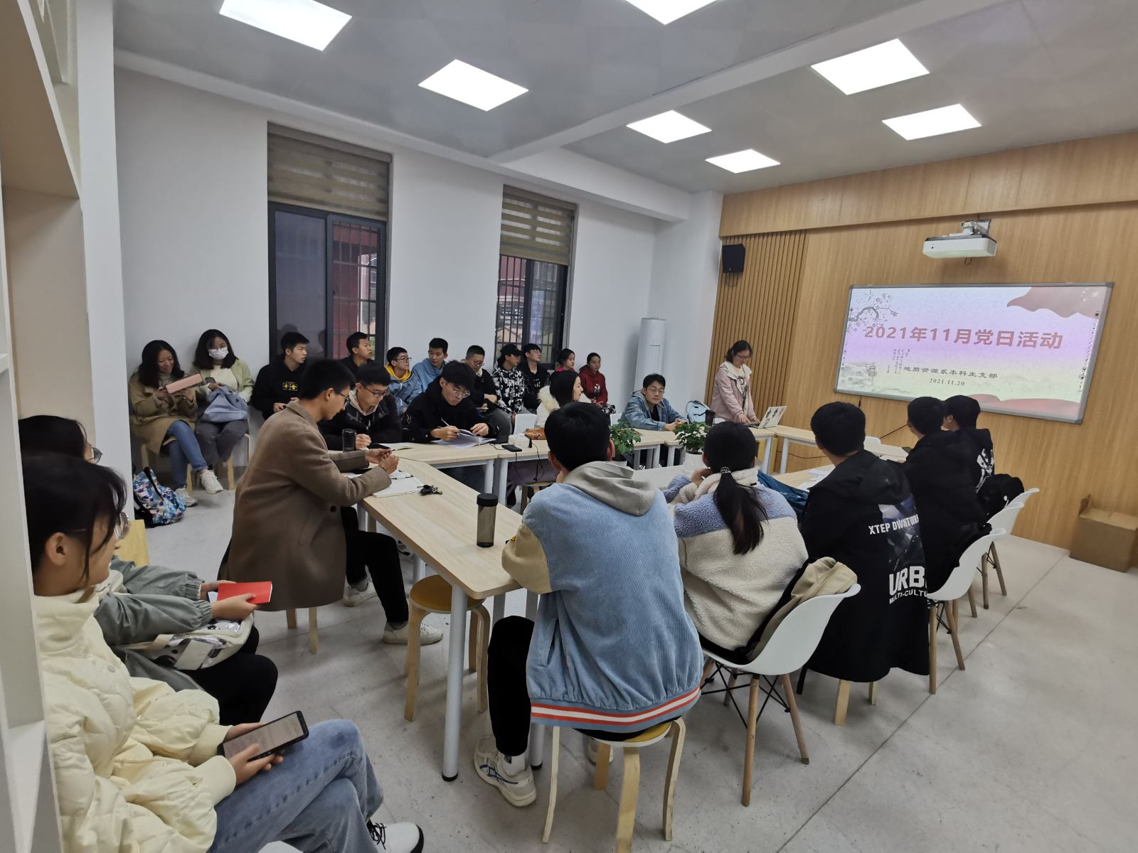 地质资源系本科生支部在新校区地科楼124开展十一月集体学习,支部党员同志及发展对象共29人参加会议,大会由何玲同志主持。