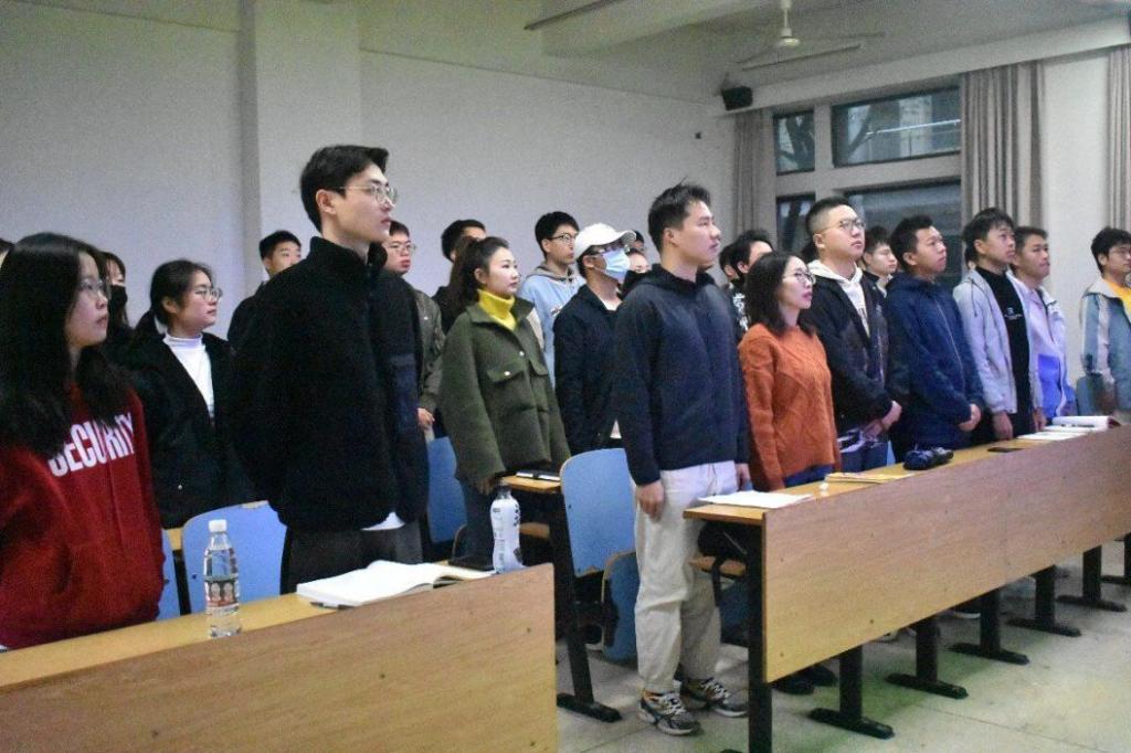 紧接着,班导师杨通田也对同学们提出明确要求。他希望同学们除了组织上入党之外,更重要的是在思想上入党,要明确自身党员身份意识,规范个人行为,政治素养要强要硬,遇到问题要积极主动,做到“党员先上,勇担责任”。