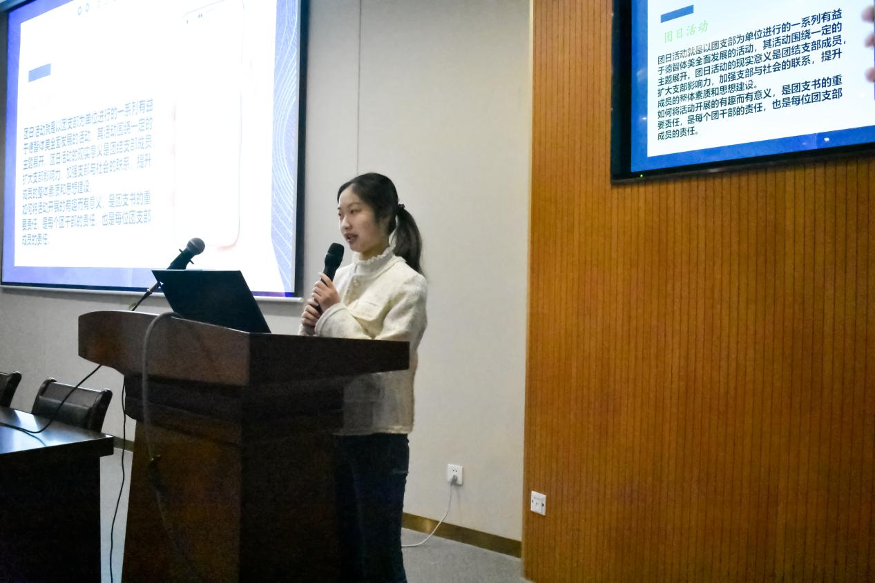 团委书记刘琦老师致开幕辞。刘老师首先对到会的各位团支书表示欢迎,对本次培训会表达了充分的肯定。她强调了团支书的职能与责任担当意识,希望各位团支书可以担负起自己的职责,同时对青年大学习学习率方面提出了更高的要求,也希望各位在本次培训中认真学习团的基本知识,持续推进基础团务工作,开展更丰富精彩的团日活动,共同建设活力满满的基层团支部。
