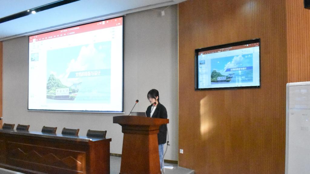 学工部综合办公室助理负责人夏熙珍同学向大家讲解公文排版和表格制作,并分享其工作经验,总结了工作所需要具备的四个意识,让同学们印象深刻。接着,明升M88