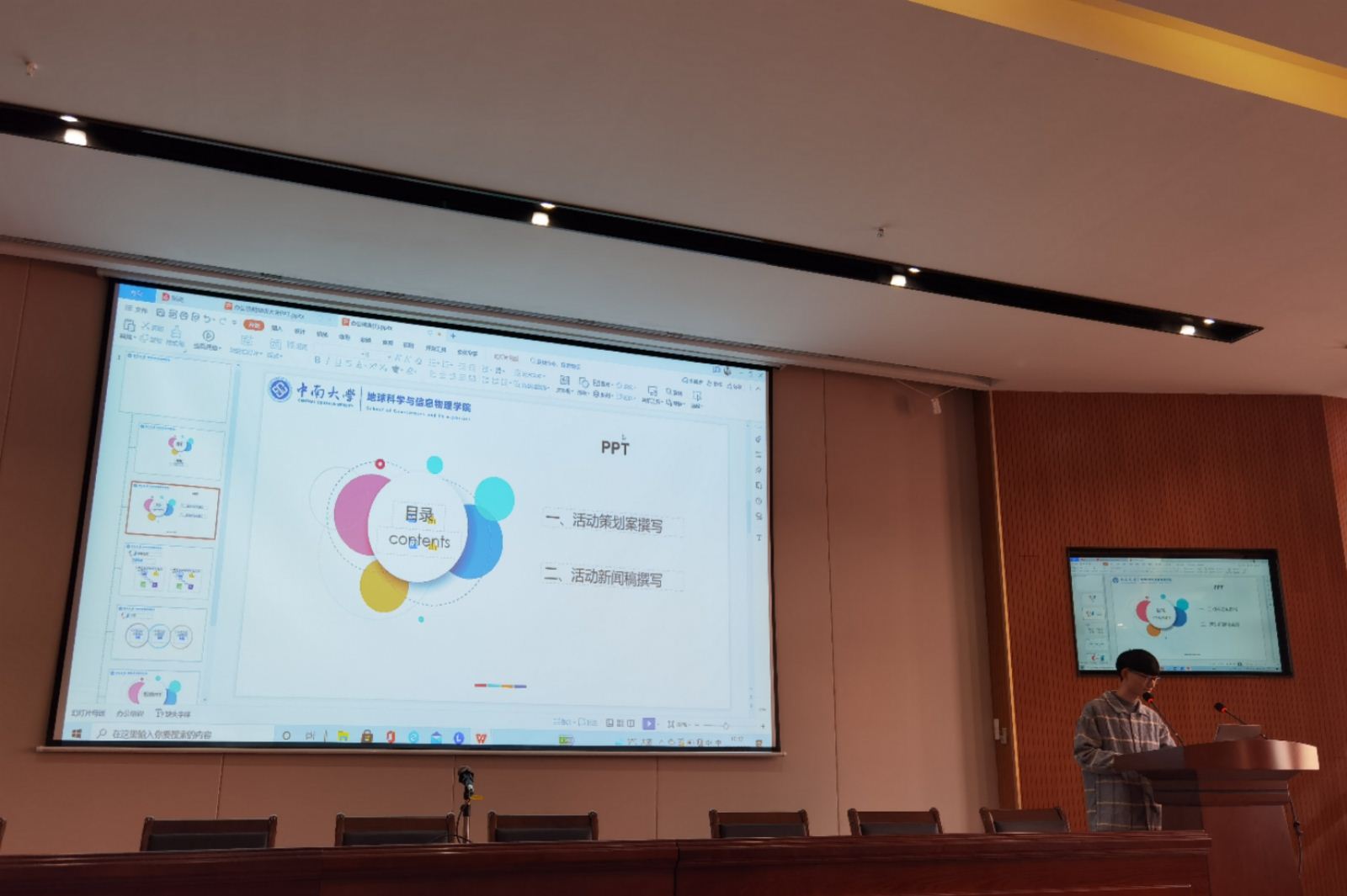团委宣传部部长孟令闯同学向大家讲解PPT制作及文案撰写。最后,主持人致闭幕词,线下全体参会成员合影留念,办公技能培训大会圆满结束。