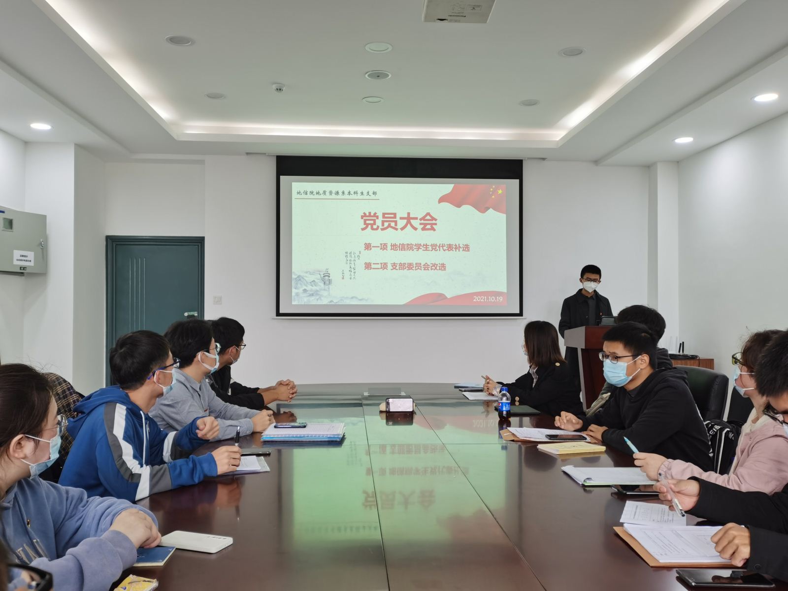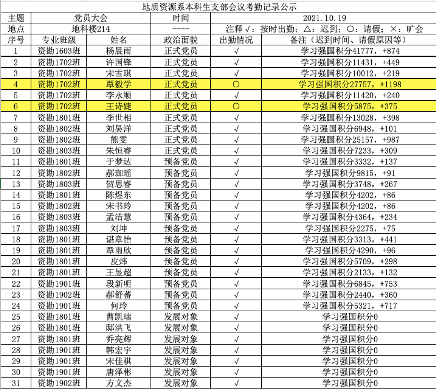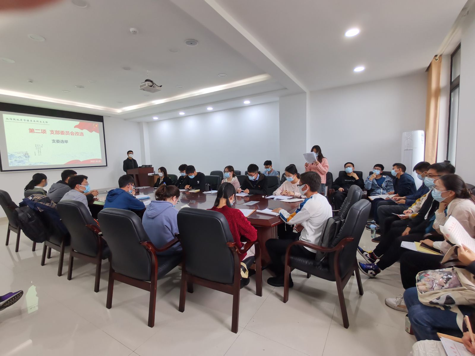 地质资源系本科生党支部在新校区地科楼214召开党员大会,支部党员同志及发展对象共29人参加会议,大会由支部书记杨晨雨主持。
