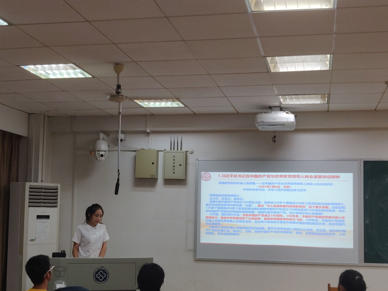 会议第二项,由江世宇同志主持九月份党课学习,本次党课学习的主要内容是学习习近平系列讲话。会议上,组织观看了习近平总书记关于中国共产党与世界政党领导人峰会重要讲话精神的视频,同时学习了习近平总书记在中央民族工作会议上的重要讲话精神、在中央全面深化改革委员会第21次会议上的重要讲话精神以及在2021年秋季学期中央党校中青年干部培训班开班式上的重要讲话精神等一系列重要讲话精神。要求支部全体同志要深刻理解“四个伟大成就”的历史意义,不断增强“四个意识”,坚定“四个自信”,做到“两个维护”,在新征程上进一步坚定理想信念。