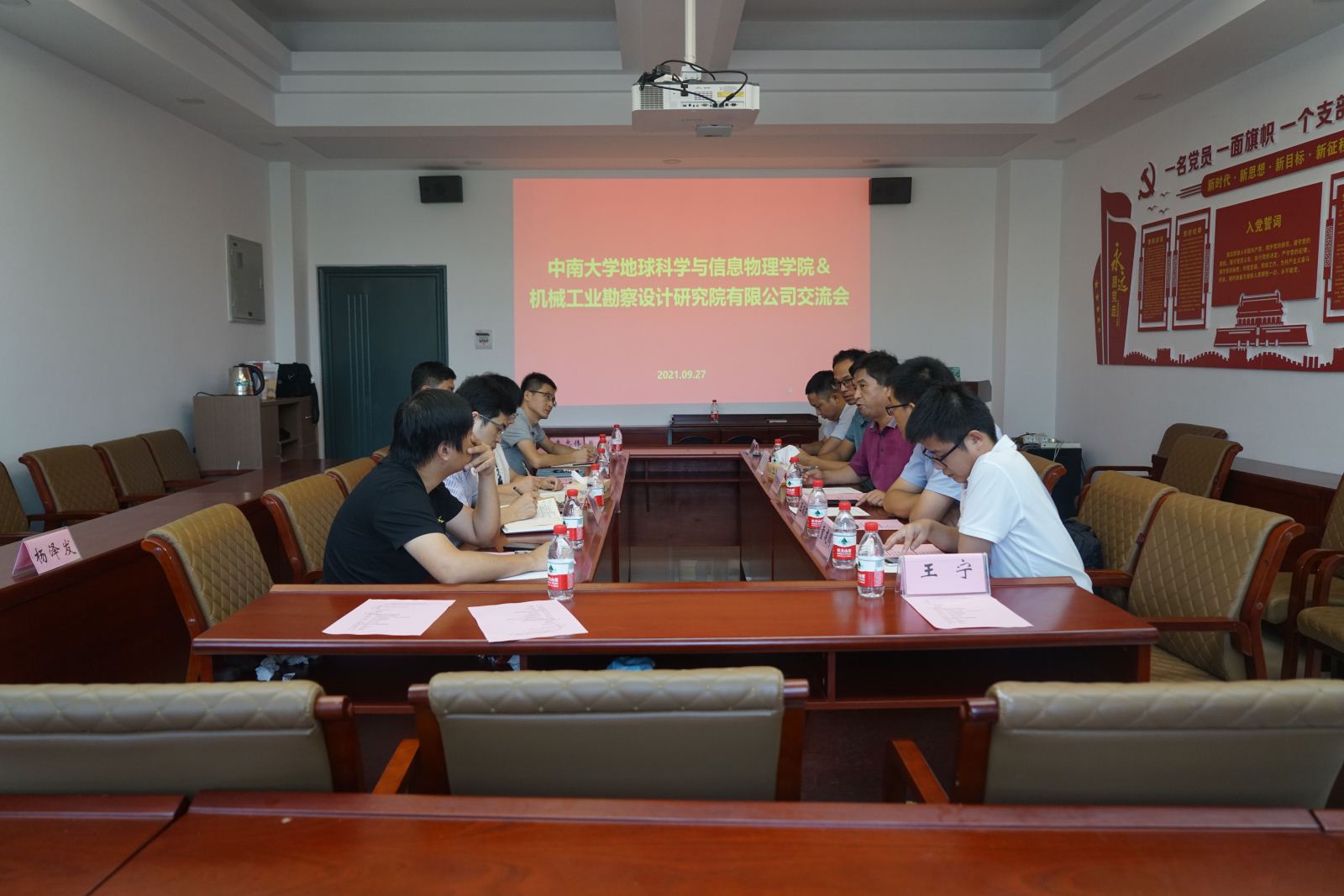 与机械工业勘察设计研究院有限公司交流会于地球科学大楼216会议室顺利举行。出席此次会议的领导有机械工业勘察设计研究院有限公司党委副书记、总经理杨永林,人力资源部副部长、党委干部部副部长刘哲强,测绘工程院副院长王双雨,综合管理部副部长彭卫超,测绘工程院童建鹏,以及明升M88