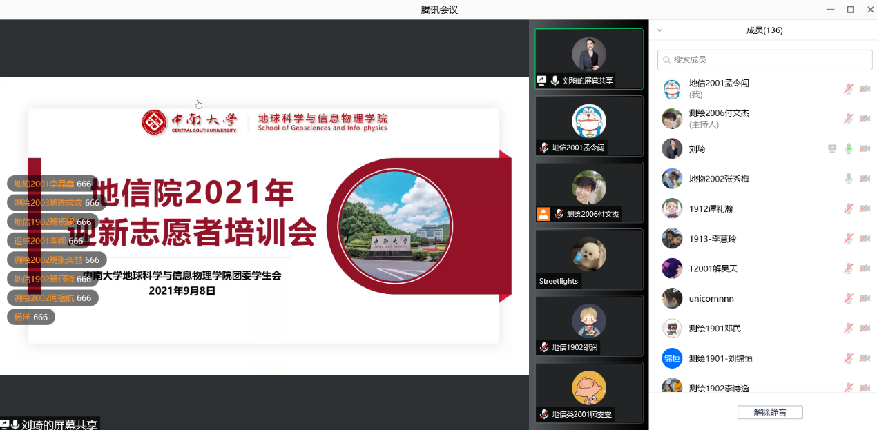 2021年迎新志愿者培训会议通过“腾讯会议”以线上方式顺利举行。会议由院团委书记、21级辅导员刘琦老师主持召开,所有迎新志愿者参加本次会议。