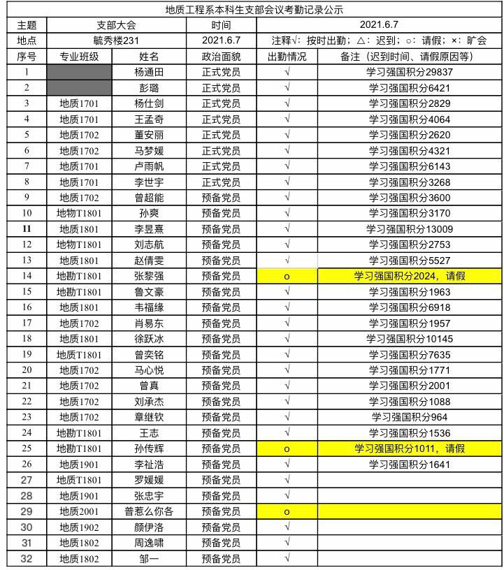 会议第一项,组织委员董安丽同志进行应到参会人员点名,之后由各位同志汇报“学习强国”APP分数。