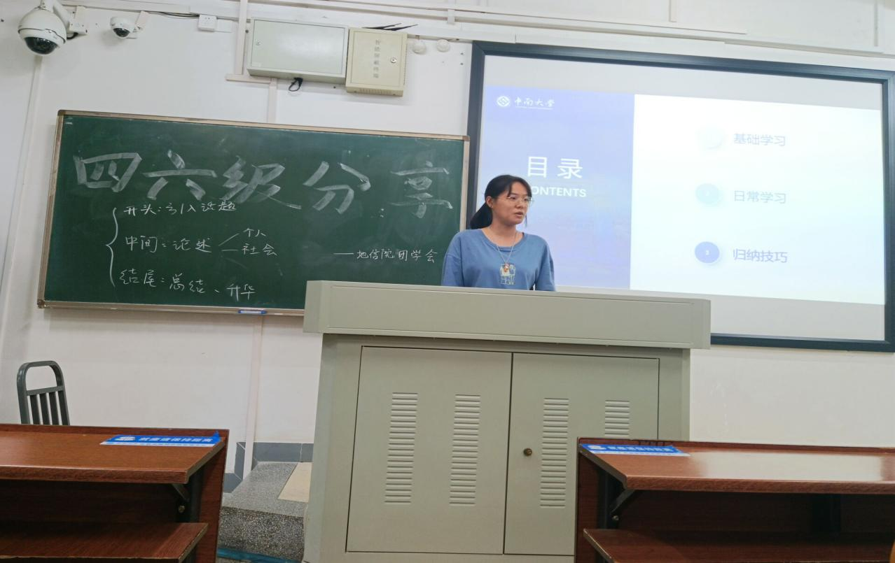 团委、学生会主办的“极地漫谈”益友系列之“四级六级,有我别急”四六级经验分享会于新校区A座124教室顺利举行。本次活动由院学生会学习部主办,地信类2001班吴跃达同学主持,地质1801班李昱熹同学、测绘1903班徐蕾同学、地信类2001班黄悠南同学主讲。