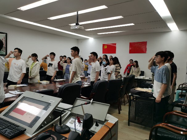 其后,本次接收的预备党员同志怀着加入党组织的激动心情进行了表态,他们将在实践中不断提升自己,立志为人民服务,在群众中起到榜样带头作用。预备党员接收会的最后,支部全体成员共同进行了入党宣誓。