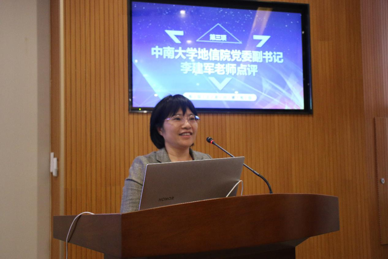 党委副书记李建军老师就整场选手表现进行点评。李建军老师对此次答辩活动表示了充分的肯定。她指出,“地信星”评选活动的开展,目的在于树立典型,参赛的学生确确实实都是每个方面的典型代表,每位选手都有着勇于展示自己优秀面的劲头,都充分展示了明升M88