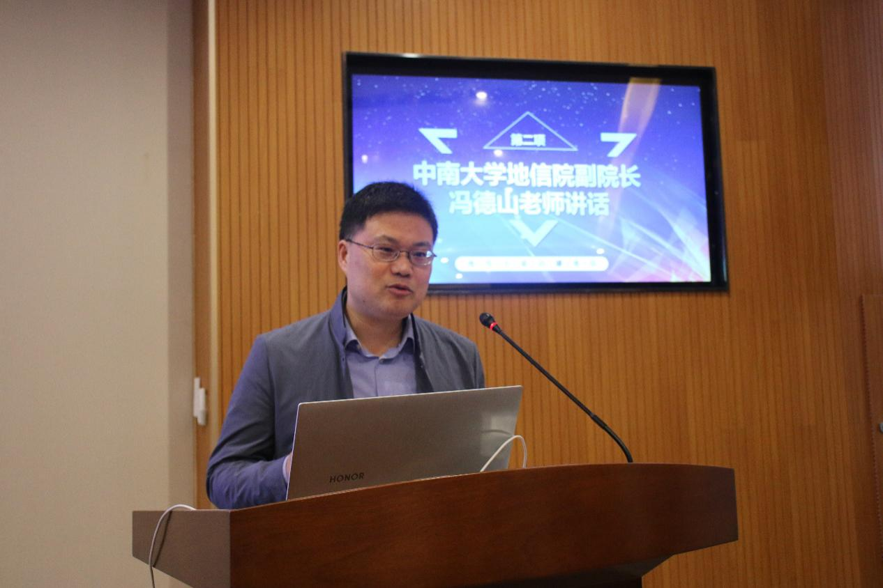 副院长冯德山上台讲话。冯德山老师表示,能与这么多优秀的大学生一起参加此次活动,他感到十分的高兴。他希望此次评选出的地信榜样学子能引领更多的地信学子向更高、更远、更强的目标奋进。最后,他呼吁同学们把勤奋学习作为人生进步的重要阶梯,把深入实践作为成长成才的必由之路,把奉献社会作为不懈追求的优良品德,用青春汗水谱写更加壮丽的人生篇章!