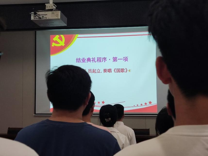 典礼第五项:全体人员起立,奏《国际歌》。学员们全体起立,结业典礼在《国际歌》中结束。