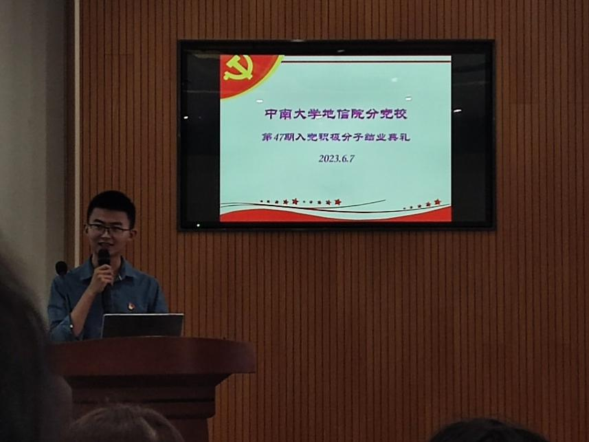 党委分党校第47期入党积极分子培训班结业典礼在地球科学楼127报告厅顺利举行。此次典礼由第47期积极分子培训班班导师杨晨雨老师主持,发展对象培训班班导师杨通田老师及培训班162名学员参加。