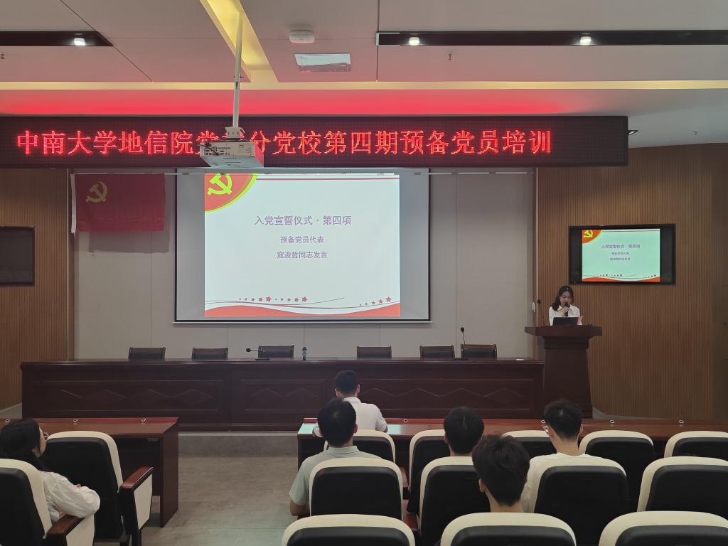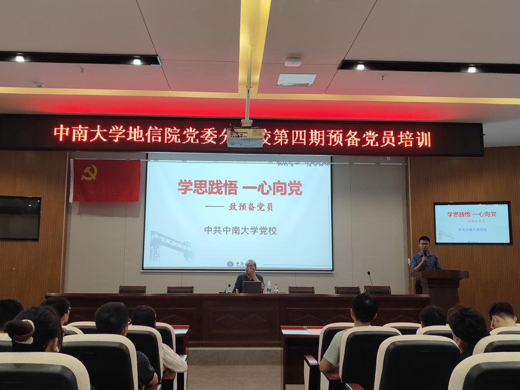 党委分党校第四期预备党员培训在地科楼127举行。本次培训由杨晨雨老师主持,发展对象培训班班导师杨通田老师、党校唐建华教授以及全体预备党员参加。