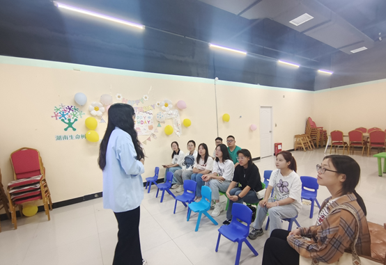 “大思政”实践育人联盟联合共建的“社区实践计划”实践基地,以便更好帮助同学们在实践中受教育、长才干、做贡献,同时发挥专业课特长,开展常态化社会公益服务、科学普及教育等活动。仪式期间,团队信息员寇浚哲同学和安全员何嘉同学分别介绍实践具体安排及实践活动安全事项。最后,湖南生命树的老师为队员们进行专业培训,指导队员们如何与孩子相处并处理突发状况,为实践活动的进行打下良好的基础。