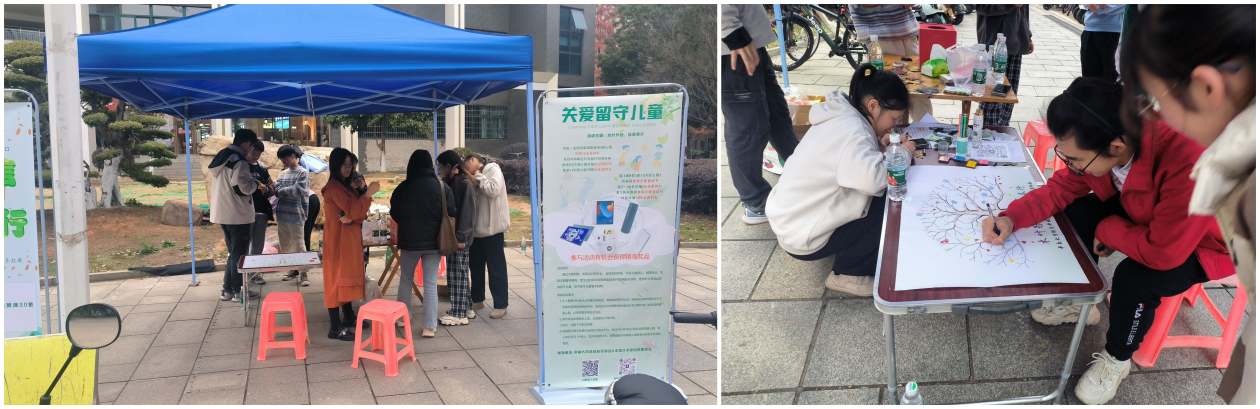 二食堂门口,开展了以“木叶为信,以爱奉行”为主题的明信片活动。