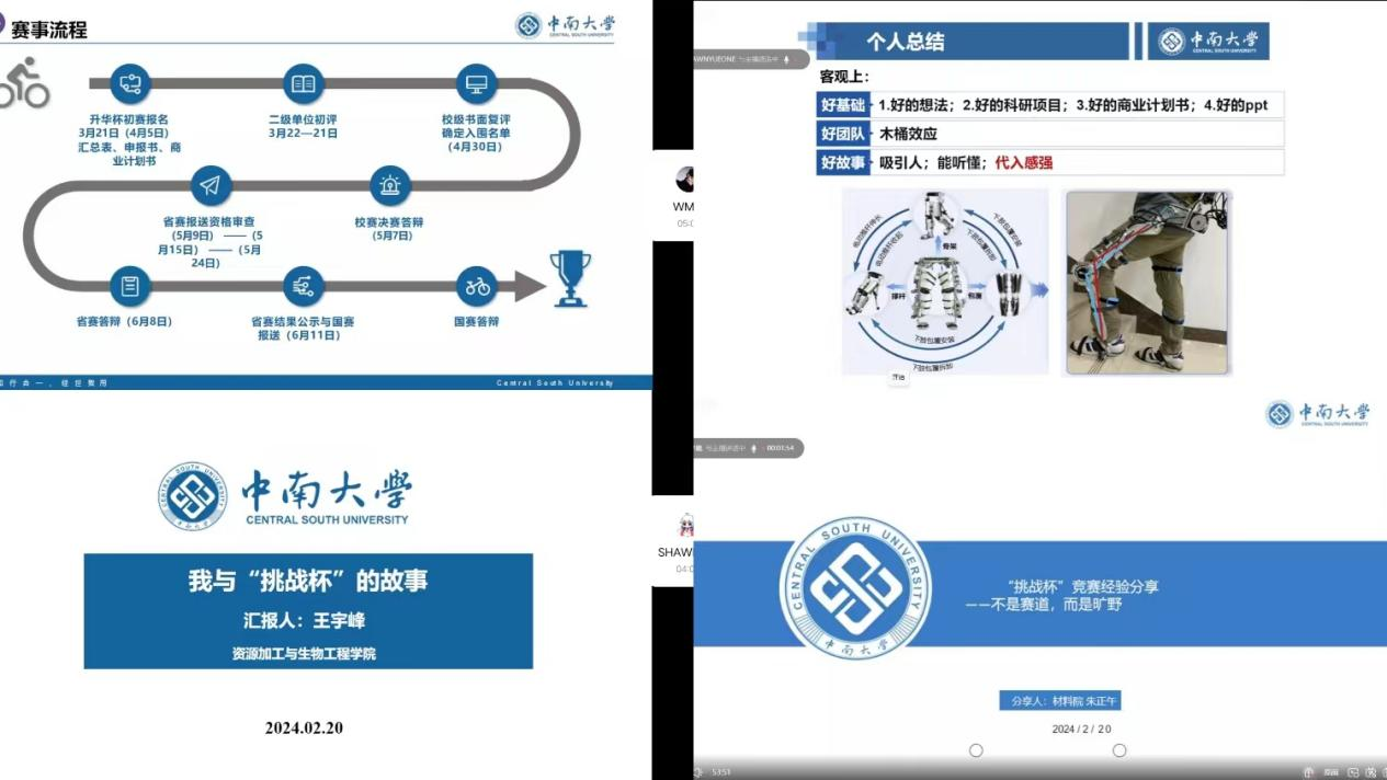 同学们高效备赛“升华杯”,提高竞赛能力,院团委学生会主办的“升华杯”大学生创业计划竞赛培训会于2024年2月20日顺利举行。本次培训会采用网络直播的方式,邀请到“挑战杯”中国创业计划竞赛金奖获得者王宇峰同学和“互联网+”大学生创新创业大赛全国银奖获得者朱正午同学进行分享,报名“升华杯”竞赛的7支队伍成员参加培训,观看直播达200人次。