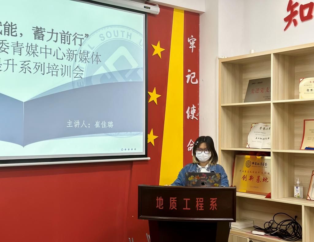 青年传媒中心于新校区地科楼112报告厅举行了“以学赋能,蓄力前行”新媒体技能提升系列培训会。本次会议由院团委学生副书记曹燕飞、张庭桂,院团委影音部副部长崔佳璐讲解,院团委青年传媒中心全体成员参会。