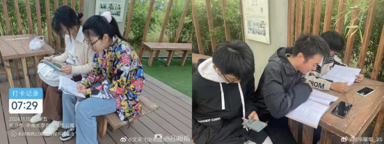 本次晨读活动不仅有同学参加,辅导员寇浚哲、王爽爽老师也常常参与陪伴晨读,监督同学们按时打卡学习。既帮助同学们加强生活自律,也促进了师生友谊,使得晨读不仅是一项学习活动,更是教学相长的互动。老师们的辛勤耕耘端正了同学们的学习态度,为晨读活动增添了一抹亮色。