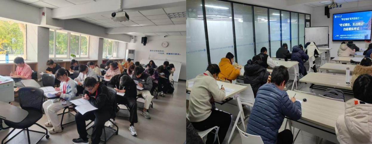个人参与形式模拟考试按照英语四级考试的标准和要求组织安排。考试前,学习部工作人员提前到达考场进行准备工作,确保考场座位安排合理、考试环境安静适宜、考试设备运行正常。临近考试开始时,同学们在工作人员组织下有序签到、入场。考试过程中,同学们全神贯注,或奋笔疾书,或认真思索,每个人脸上都写满了专注。