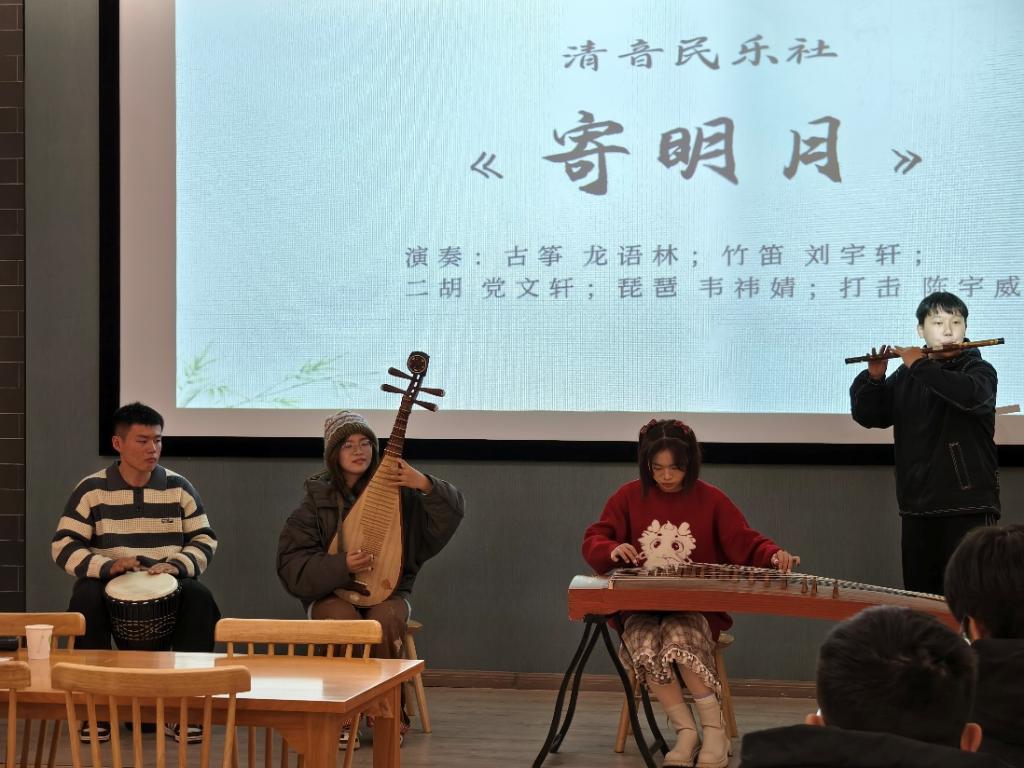 2024年12月14日晚,清音民乐社、橘子口琴社、猗兰古琴社的同学们齐聚在明升M88