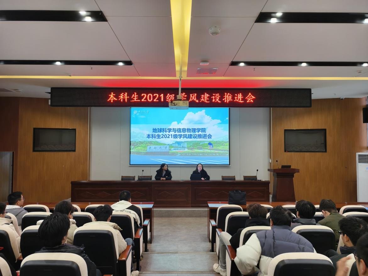 本科生2021级学风建设推进会于地科楼127顺利召开。年级辅导员刘琦、张馨心及全体2021级课程未通过学生参加会议,本次会议由刘琦老师主持。